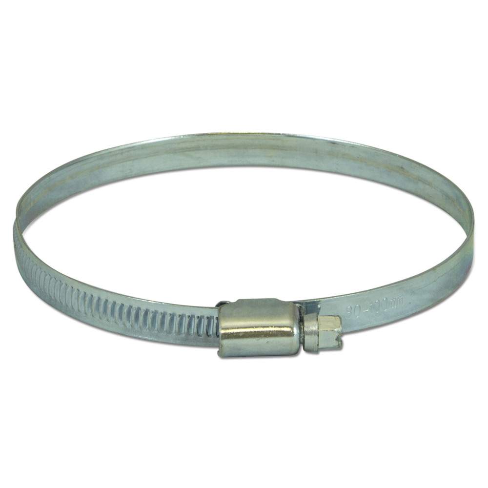 Abrazadera acero antifugas 4″ 80 mm. Brida de acero, ideal para fijar conductos y tuberías de riego.