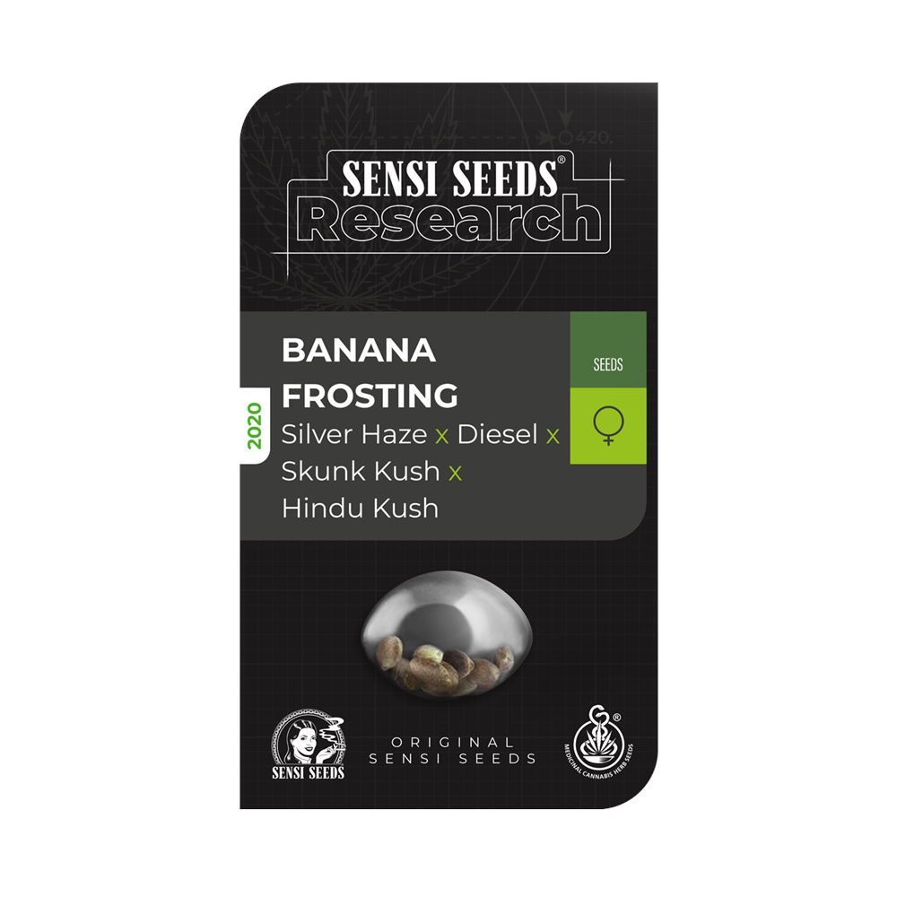 Banana Frosting, esta variedad cuenta con una mezcla de genes impresionantes que incluyen Skunk Kush,