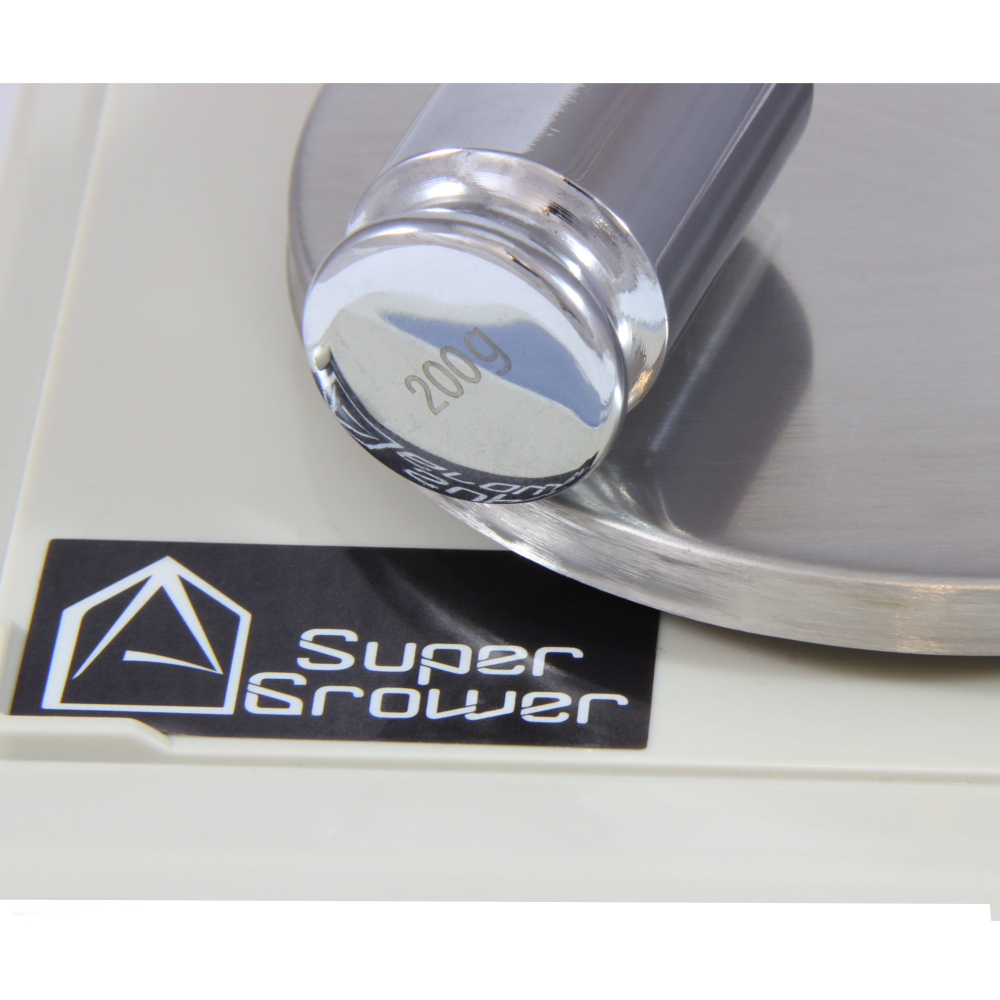 Con doble pantalla retroiluminada para una mayor fiabilidad y control, con la báscula Super scale by Super Grower,