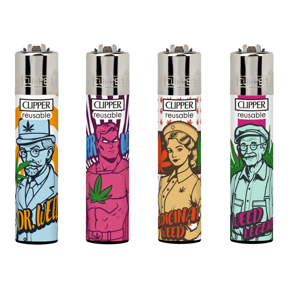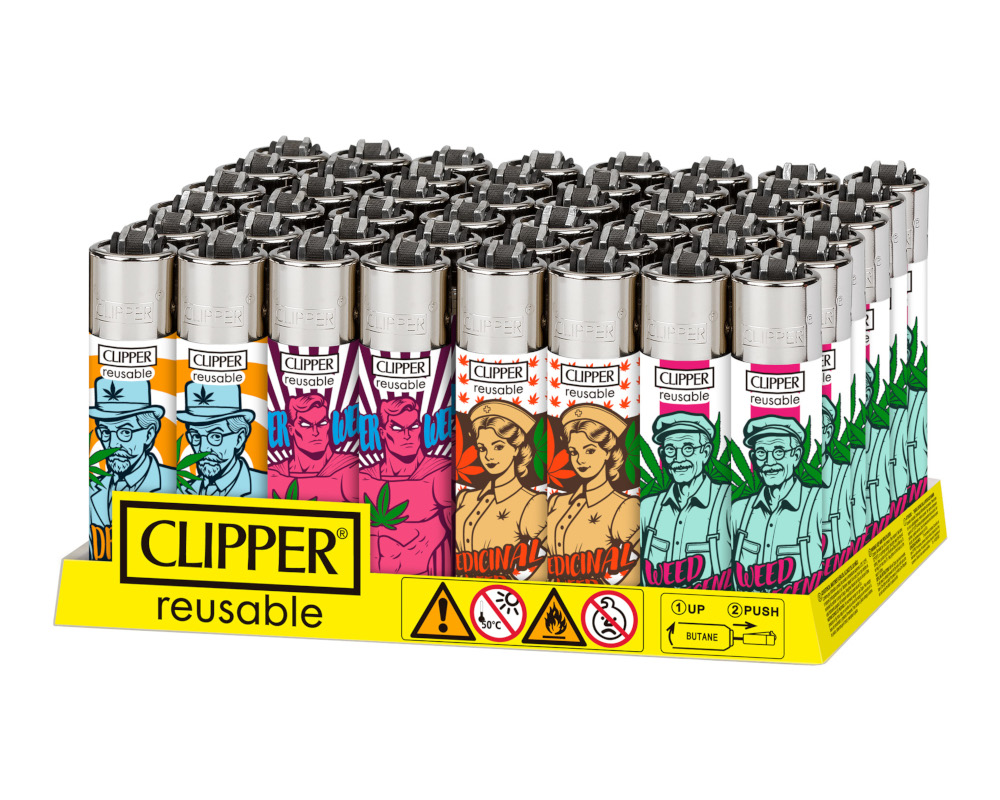 Colección Family Weed de Clipper. Bandeja de 48 encendedores con garantía de 3000 encendidos (según fabricante) en cada uno de sus mecheros.