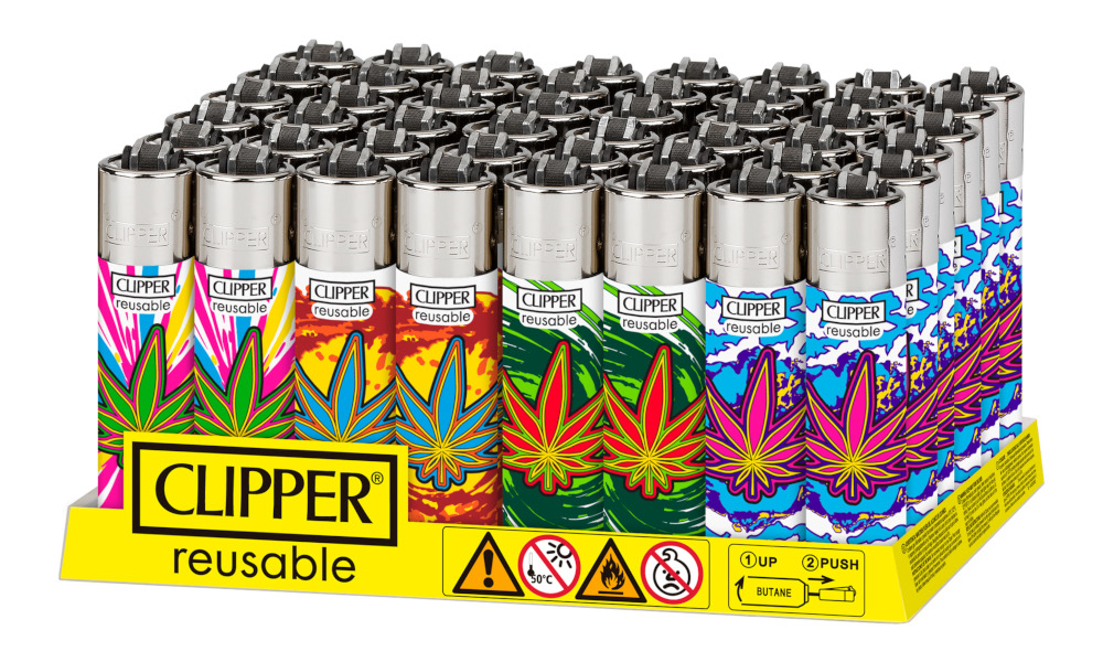 Colección Leafs Explosion de Clipper. Bandeja de 48 encendedores con garantía de 3000 encendidos (según fabricante) en cada uno de sus mecheros.