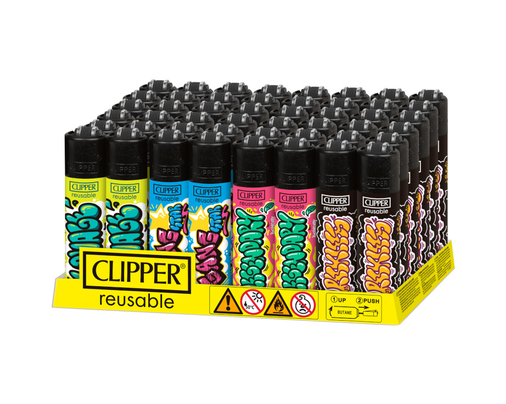 Colección Graff life 4 de Clipper, bandeja de 48 encendedores con garantía de 3000 encendidos (según fabricante) en cada uno de sus mecheros.