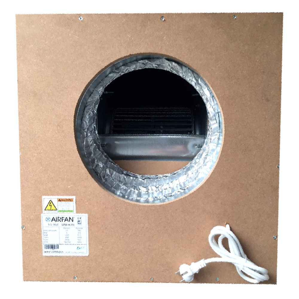 El extractor de turbina de alto rendimiento está colocado dentro de la caja insonorizada de madera MDF