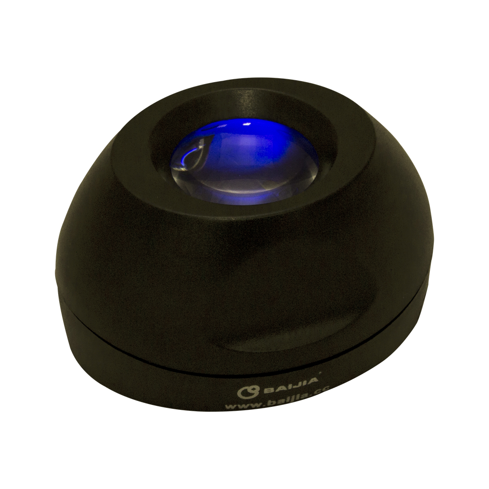 Detector de billetes falsos que detecta las marcas visibles solo bajo la luz ultra-violeta.