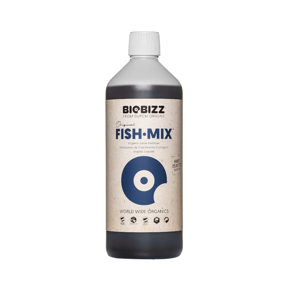 Fish Mix by Bio Bizz. Condiciona los sustratos estimulando la flora bacteriana y acelerando el crecimiento de las plantas.
