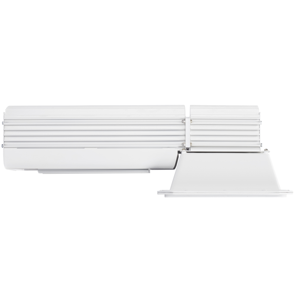 Dispone de un reflector en aluminio Vega con forma rectangular y el cual genera una proyección cuadrada y muy uniforme.