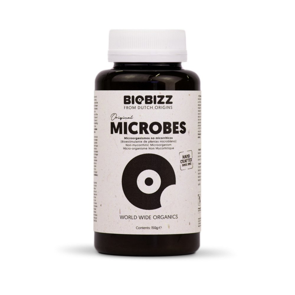 Microbes by BioBizz. Es un consorcio completo de microorganismos, enzimas y hongos beneficiosos que estimula el proceso de germinación y el crecimiento inicial de la plántula y ayuda al estadio de floración. Crea un mayor flujo y absorción de nutrientes esenciales e incrementa la cosecha final.