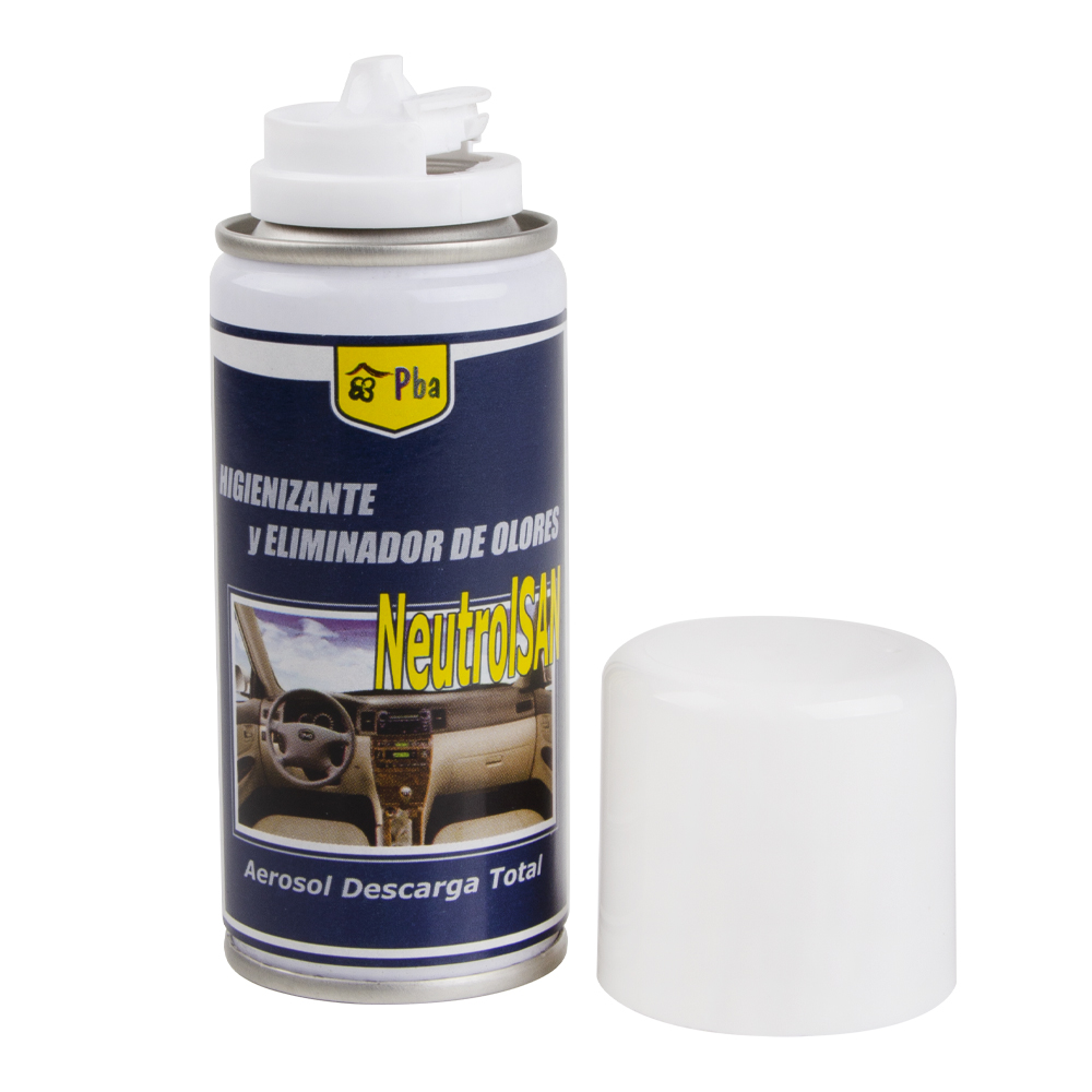 Neutralizador higienizante eliminador de olores. Es un aerosol de descarga total (o parcial).