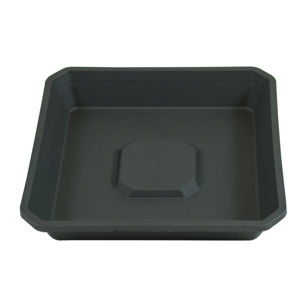 Plato negro Eco 15×15 cm para macetas cuadradas., fabricado en plástico negro, resistente, sirve para recoger el sobrante de riego