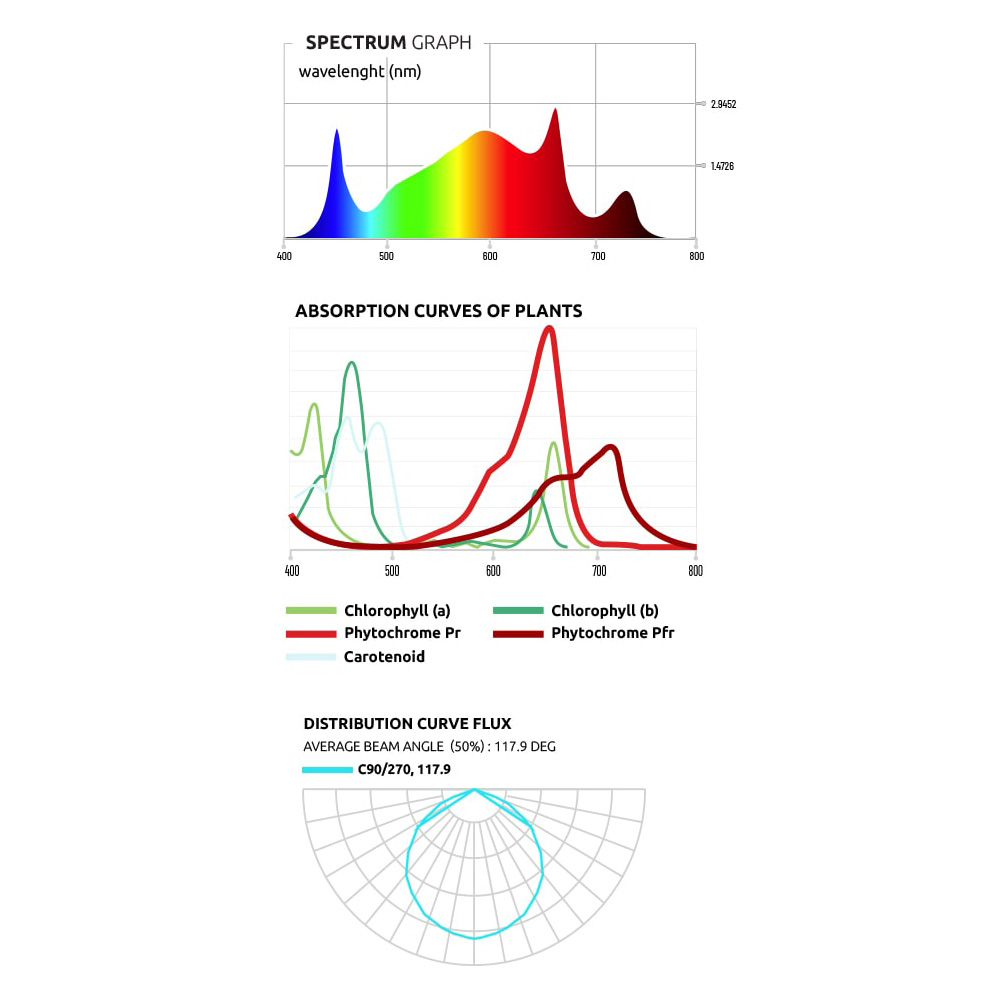 Las soluciones de luz de crecimiento LED de Lumatek utilizan una combinación de LED blancos, rojo intenso y rojo lejano para producir una fuente de luz altamente eficiente calibrada para proporcionar una salida de alta intensidad, estable y uniforme para una absorción de luz óptima.