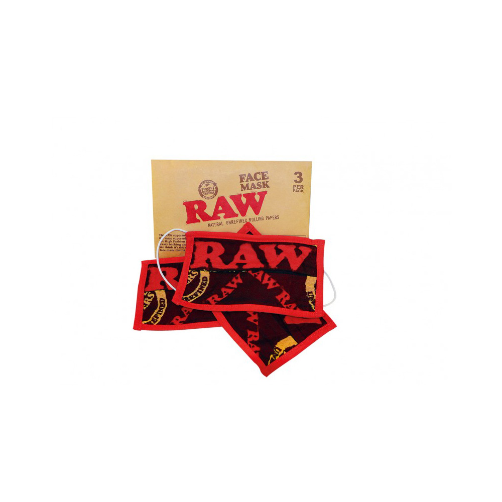 Pack de 3 mascarillas para uso personal de Raw con un llamativo diseño y el inconfundible logo de Raw.