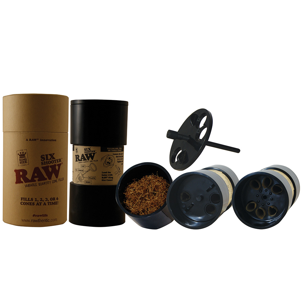 Raw Six Shooter diseñado para liar 1,2,3 o 6 conos al mismo tiempo. Has de utilizar los conos King Size para rellenar de una forma cómoda y sencilla. En menos de 1 minuto tendrás listos hasta 6 conos, además puedes utilizar el Raw Six Shooter para guardar los conos que hayas liado y fumarlos más tarde cuando te apetezca.