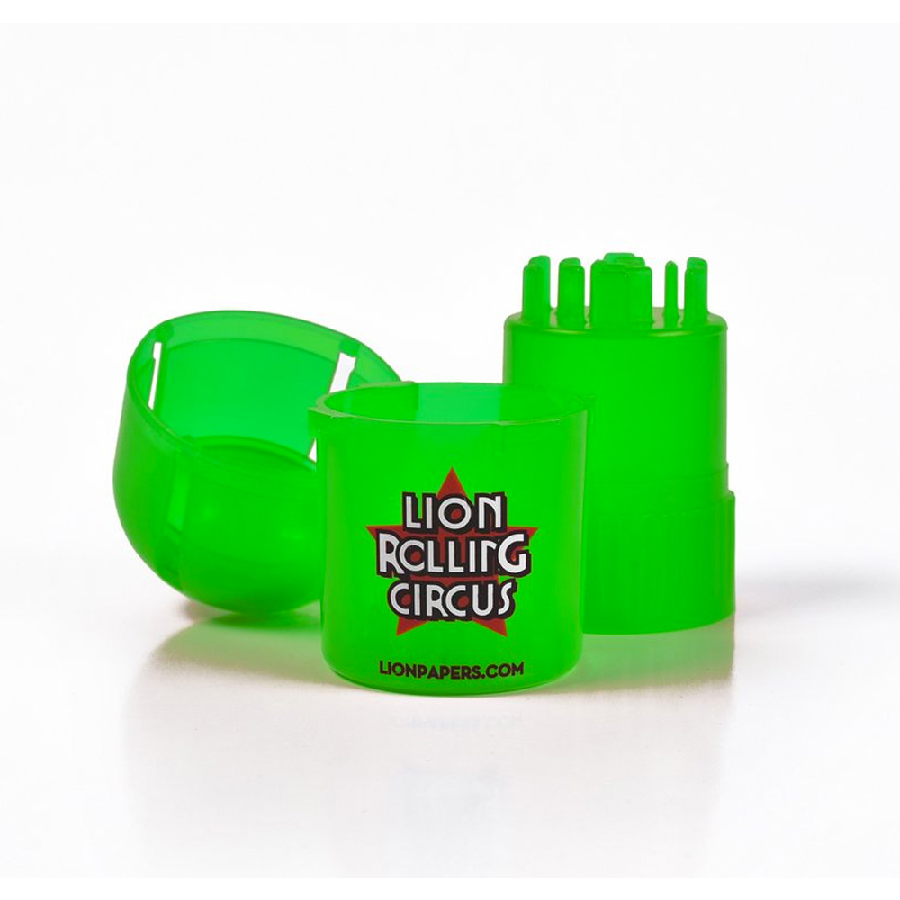 Lion Trainers by Lion Rolling Circus. Fabricado en plástico medicinal de combustión lenta, con un compartimento para el picado y otro para el guardado. De cerrado hermético, inodoro y a prueba de agua, tu mejor amigo para para contener olores.